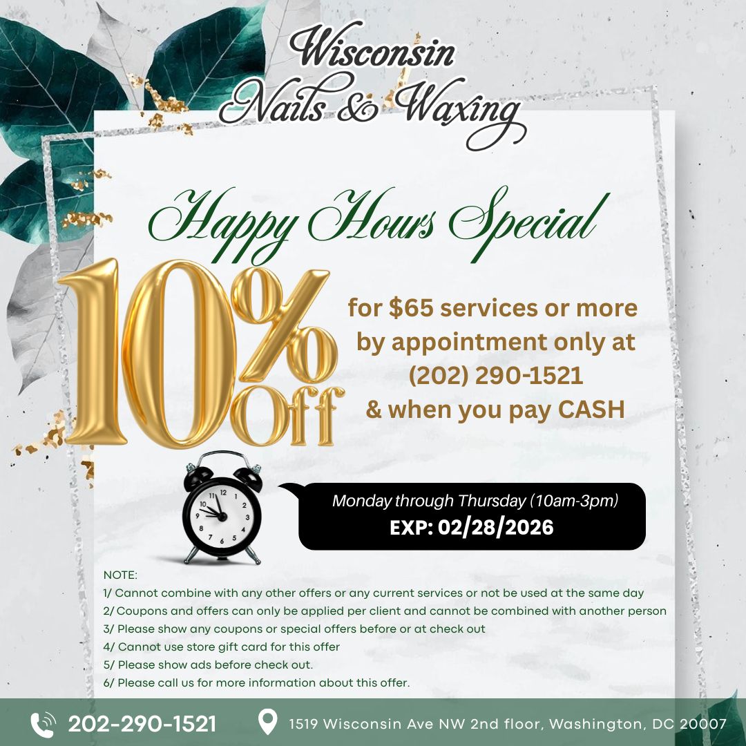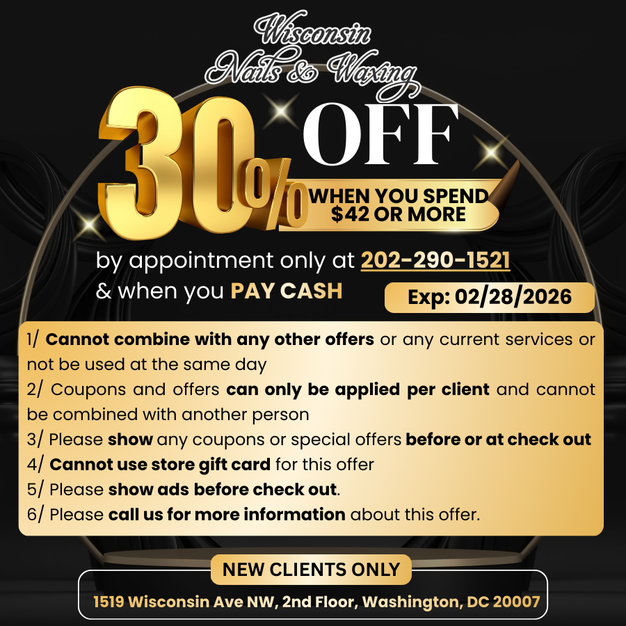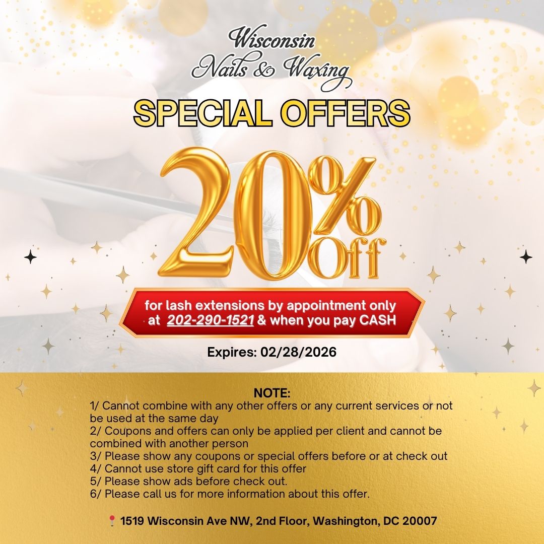 Located at a beautiful corner in Washington, DC 20007, Wisconsin Nail & Waxing is a regular salon for everyone, as we always try our best to deliver the highest level of customer satisfaction.