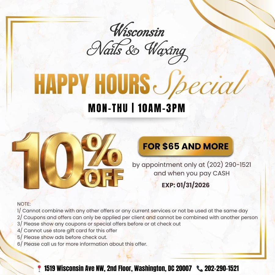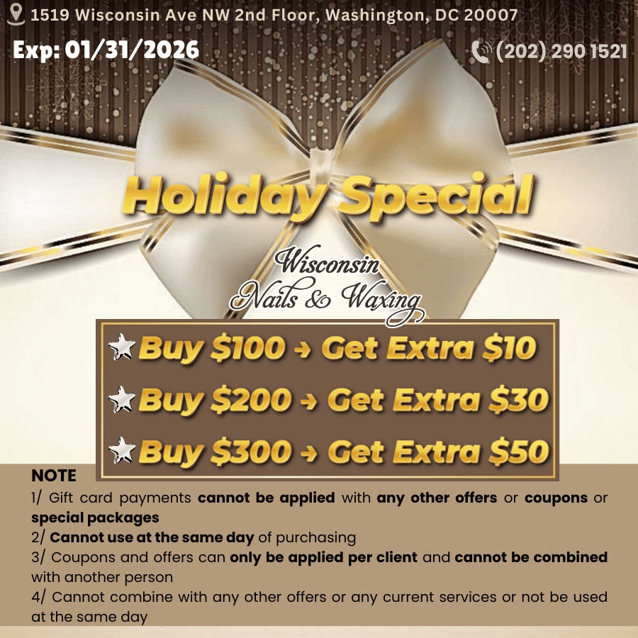 Located at a beautiful corner in Washington, DC 20007, Wisconsin Nail & Waxing is a regular salon for everyone, as we always try our best to deliver the highest level of customer satisfaction.